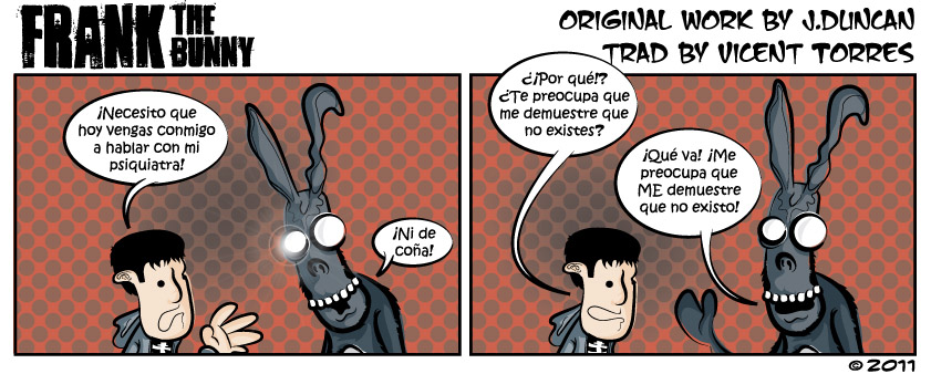 Los objetivos para este año se basan en no empanarme y echarme a dormir la siesta. Lo que tengo lo he conseguido currando y hay que seguir en esa línea, tengo claro que nadie va a venir a regalarme cosas mientras esté tirado en el sofá. Proyectos me sobran y me falta tiempo, para variar, así que intentaré ser realista. Mi prioridad principal es SBMS, eso está claro. Frank The Bunny es un proyecto pequeño que a día de hoy está casi finiquitado. También intentaré publicar en el blog algunas entradas que ya tengo pensadas e intentaré que esto no quede sólo como un buen propósito. Tengo también otros proyectos en mente y uno relacionado con la localización de videojuegos me llama la atención especialmente. Espero sacar tiempo y ponerme a ello el año que viene.